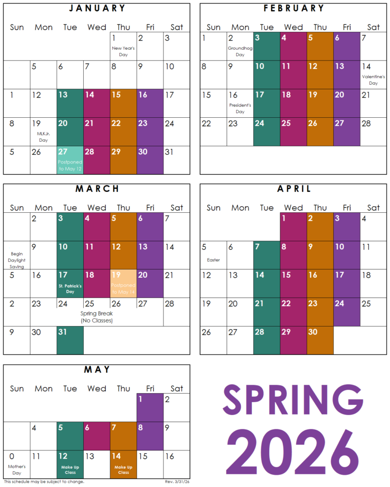 Our SPRING 2026 semester is in full swing from January 13th through May 14th.